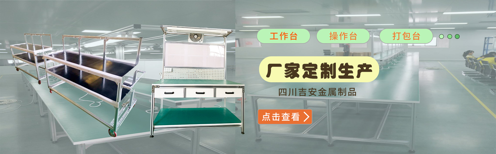 四川吉安金屬制品有限公司是集工業鋁型材及配件、貨架、工作臺、皮帶輸送線、自動化流水線、線棒精益管及扣件、鈑金和鋁合金流利條、鋁線棒及扣件、倉儲設備、物流器具、周轉臺車、工位器具、非標器具設...